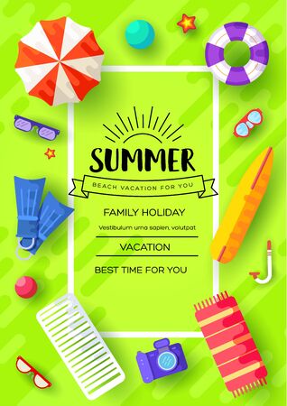 夏のトロピカル旅行リゾートレジャー フレームイラスト